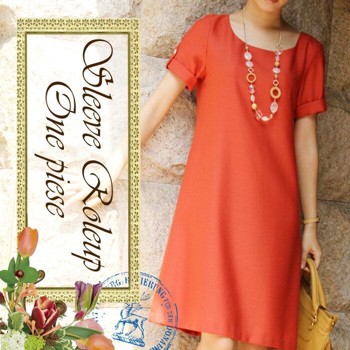 【日本製】【ワンピース】上質素材のシンプル袖ロールアップワンピース