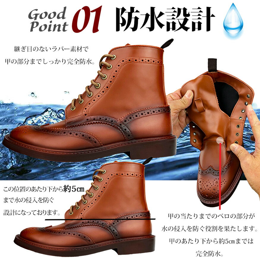【キーワード】 あす楽,メンズ,メダリオン,ウイングチップ,黒,茶,大きいサイズ 春 夏 秋 冬 防水 街履き 普段履き レイン 雨対応 雨対策 ウォータープルーフ ビジネスモデル ビジネス対応 仕事でも使える 完全防水 ウイングチップブーツ ミドル丈 ミドル 着用コメント スタッフA: ビジネス靴サイズ:26.5cm スニーカーサイズ:27.5 足長:25cm 足囲:24.5cm 甲幅:広め 着用サイズ:確認中 スタッフB: ビジネス靴サイズ:25.5cm スニーカーサイズ:26.5cm 足長:25.6 足囲:24cm 甲幅:やや高め 着用サイズ:確認中 スタッフC: ビジネス靴サイズ:25cm スニーカーサイズ:26.5cm 足長:23.5 足囲:24cm 甲幅:標準 着用サイズ:確認中