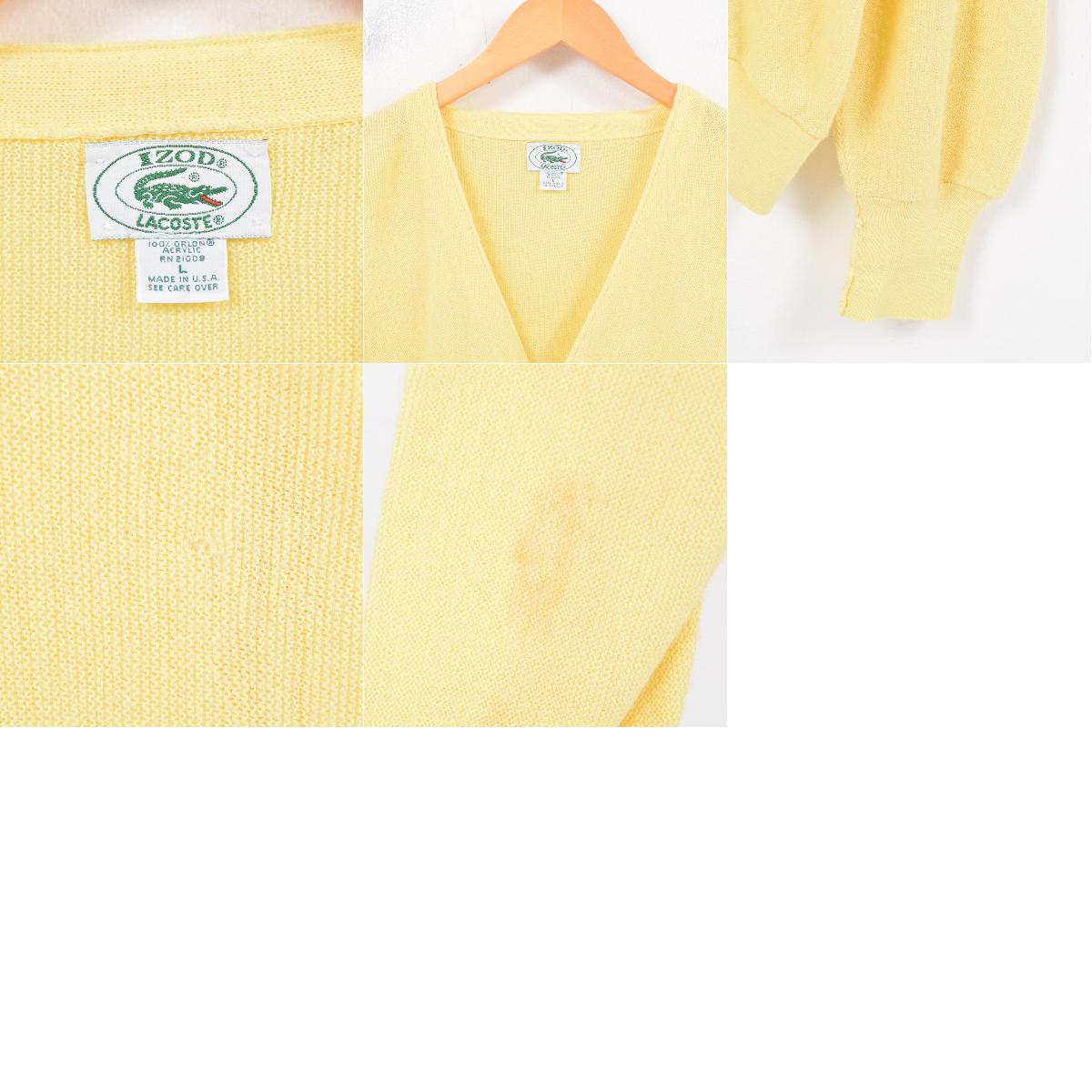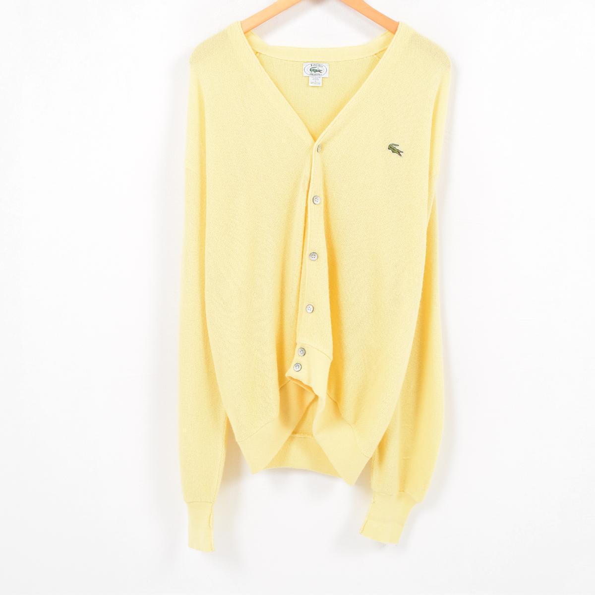 【送料無料】【あす楽】【中古】80s 80年代製 LACOSTE ヴィンテージ ラコステ アクリルニットカーディガン メンズM ライトイエロー 黄色 メンズ古着