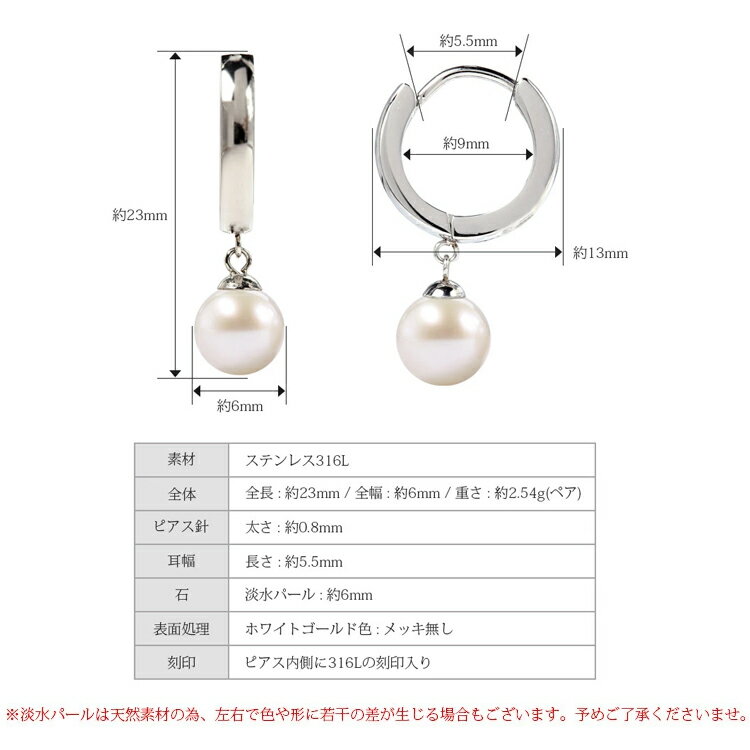 w1s15-r213-pt60 楽ギフ対応について 商品概要:フープピアス 一粒 6mm 淡水パール ステンレス316L 低アレルギー素材 SUS316L w1s15-r213-pt60 艶めく淡水パールが揺れるフープピアス。