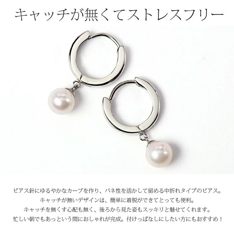 フープピアス 1粒 6mm 淡水パール 天然石 ステンレス316L 金属アレルギー SUS316L w1s15-r213-pt60 低アレルギー素材 ぶら下がり ゆらゆら揺れる レディース ミニ 小さいサイズ (ND) 倉庫 お返し